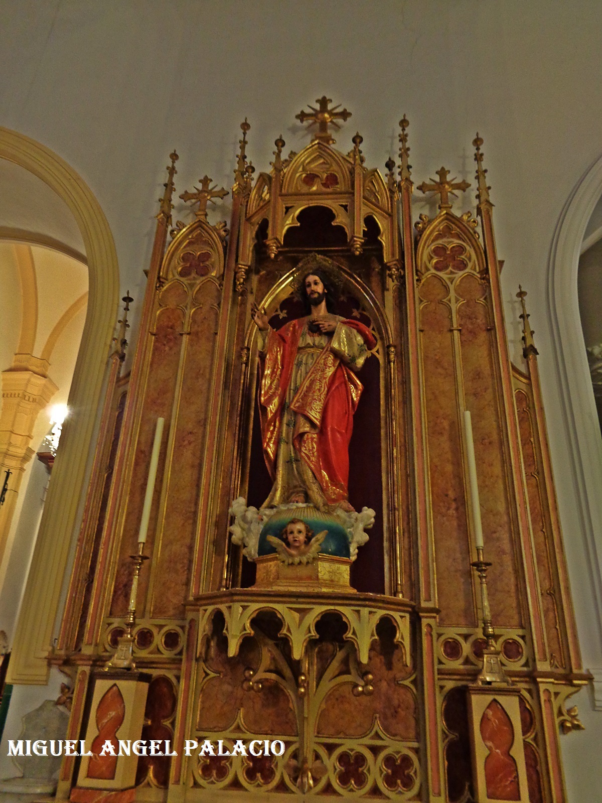 Ahora vemos la nave de El Evangelio, en la cabecera os enseño el retablo de la Virgen del Carmen, barroco del siglo XVIII y junto a este el retablo de las Ánimas del Purgatorio, también barroco del siglo XVIII. Después nos encontramos con un retablo neobarroco presidido por la imagen de San José, talla completa policromada y estofada atribuida a Hita del Castillo en el XVIII. Pasando la puerta vemos un retablo cerámico de la Virgen de los Reyes y un retablo neobarroco con la Virgen de Fátima. A los pies de la nave se encuentra la Capilla de la hermandad del Cautivo donde se encuentran las imágenes del Cristo Cautivo realizado en 1962 por Eslava y la Virgen de los Dolores, anónima del siglo XVIII.
