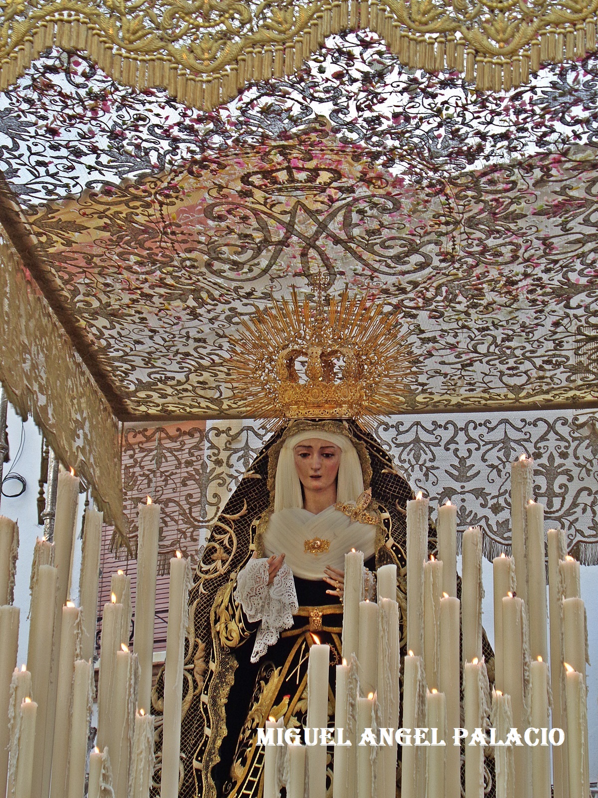 En el segundo paso procesiona Nuestra Señora de las Angustias, obra anónima del siglo XVII. Destacar el conjunto de saya y manto de terciopelo negro bordados en oro a finales del siglo XIX. El palio está actualmente en proceso de enriquecimiento estrenando este año la bambalina delantera. Iba acompañada musicalmente por la Banda de Música Maestro Tejera.
