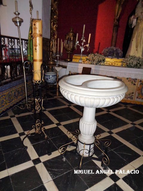 En su interior destaca el retablo mayor que proviene del antiguo Convento de la Encarnación de Arcos de la Frontera, en su camarín se encuentra la Patrona de la localidad, la Virgen del Carmen, imagen realizada por el imaginero sevillano Antonio Castillo Lastrucci.