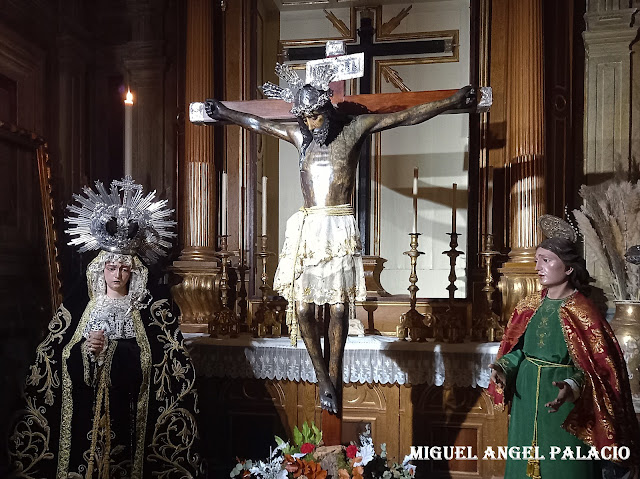 Empezamos arriba y abajo en la Iglesia de San Francisco "El Nuevo" viendo el Besamano a la Virgen de los Dolores de la Hermandad de la Vera Cruz.